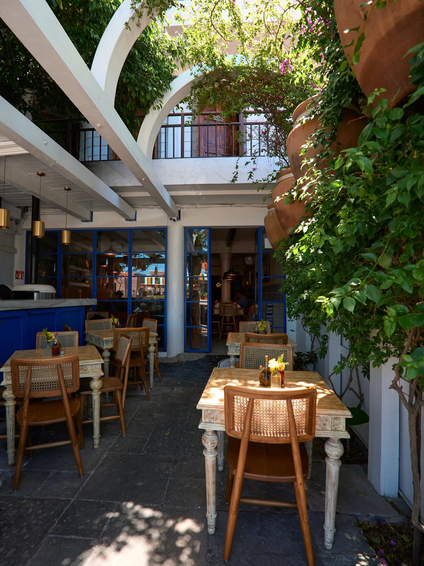 Este café combina concreto, madera y detalles modernos para crear un ambiente minimalista perfecto para fotos sofisticadas. Cuenta con una terraza jardín que añade un toque natural muy atractivo.